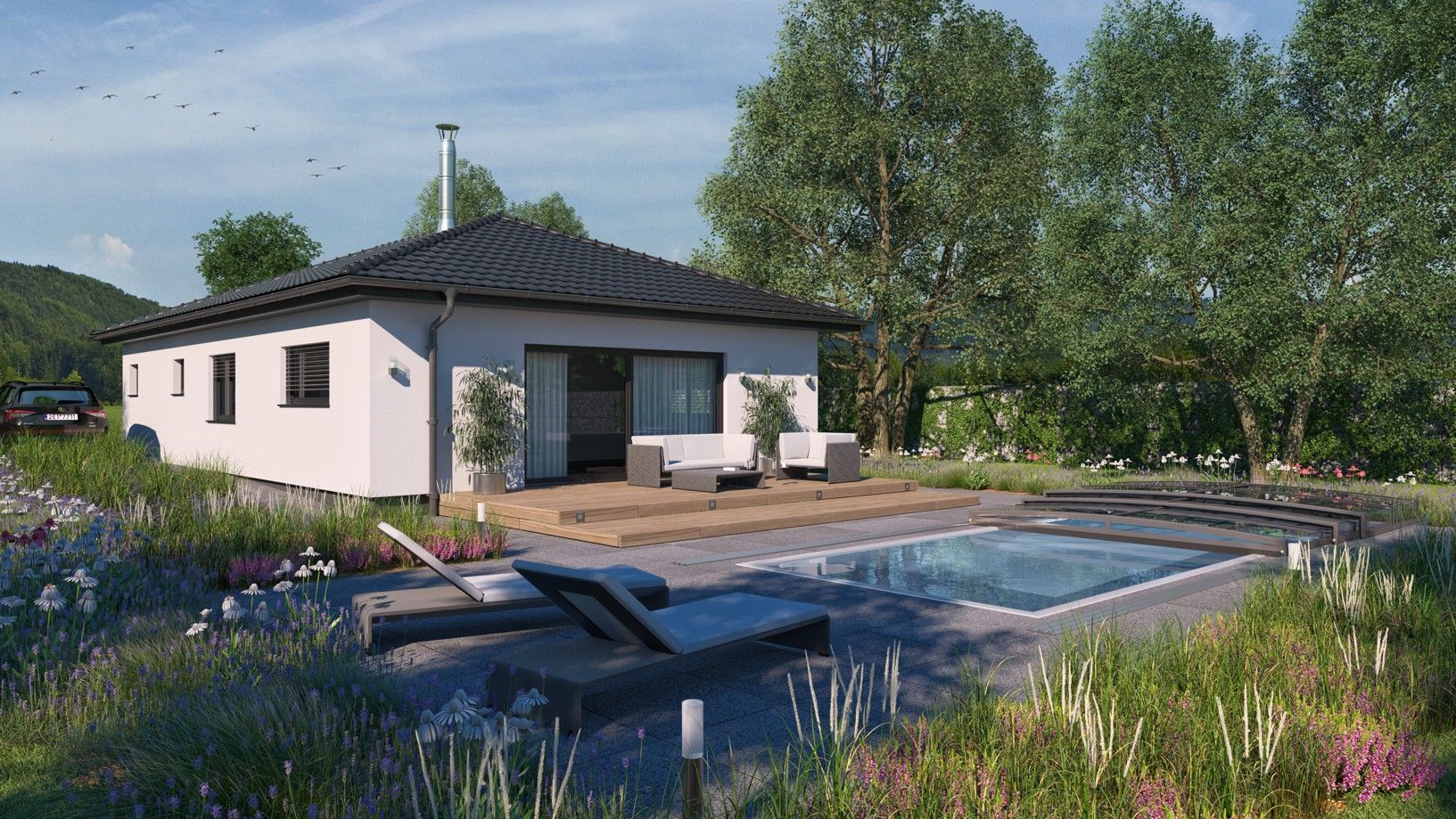 Zahrnují např. kompletní projektovou dokumentaci, základovou desku pro stabilní a bezpečnou stavbu, tepelné čerpadlo pro účinné vytápění a ekologické řešení, krbová kamna pro útulnou atmosféru a alternativní způsob vytápění a fotovoltaiku, která vám sníží náklady za elektřinu.